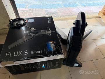 Vendo Tacx FLUX S Smart Trainer in ottime condizioni, utilizzato pochissimo e sempre tenuto con cura. È un rullo smart a trasmissione diretta silenzioso, preciso e compatibile con tutte le principali app di allenamento Zwift, TrainerRoad, Tacx, Rouvy ecc.. •Potenza max: 1500 W •Pendenza simulata fino a 10% • Precisione di potenza: +3% •Compatibile con ANT+ e Bluetooth Smart •Adatto a cassette Shimano/SRAM • Super stabile e fluido anche negli sprint Il kit contiene : - smart trainer con cassetta 9 velocita collegata - base a v - ferma ruota anteriore - cavo elettrico - perno passante