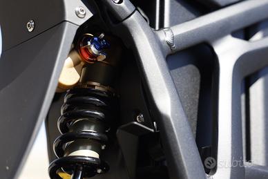 - Ammortizzatore: Ammortizzatore posteriore ad aria: lunghezza 350 mm, escursione 90mm (240mm) per un controllo fluido del retrotreno