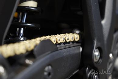 - Trasmissione secondaria: catena 520, rapporto 14/15D anteriore, 50/53D posteriore