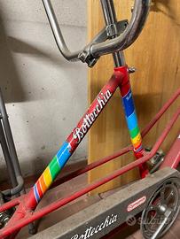 Vendo tandem bottecchia equipaggiato con cambio Sturmey Archer a tre velocità nel mozzo posteriore e freni a tamburo. La costruzione è quindi di filosofia olandese, e richiede pochissima manutenzione. Gli pneumatici sono vecchi ma possono ancora marciare (ne consiglio però la sostituzione. Sellini, pedali, e manopole sono ancora in buone condizioni. Il Tandem ha biaogno di una pulita ma è molto bello per delle gite in compagnia o con i figli piccoli.