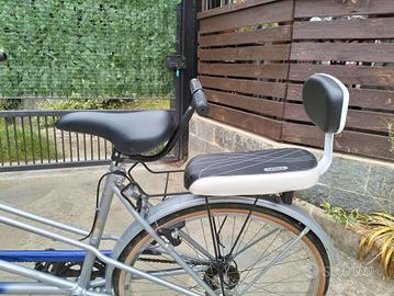 tandem quasi mai usato con seggiolino per bambini e poggiapiedi.