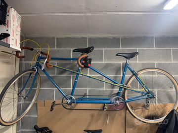 Vendo bellissimo tandem Boccardo vintage in acciaio, completamente rivisto e pronto all’uso. Bici affascinante e rara, ideale per cicloturistiche, eventi storici (tipo Eroica) o semplicemente per chi vuole qualcosa di unico. 🔧 Condizioni: •Telaio in acciaio in buono stato, con segni del tempo (come da foto) •Trasmissione funzionante e scorrevole •Freni revisionati e funzionanti •Cavi e guaine nuovi (gialli, stile vintage moderno) •Copertoni Panaracer Pasela 700x35 nuovi •Nastro manubrio nuovo •Pronta da usare subito Taglia: adatta a persone di statura media (da verificare in prova) Non è una bici nuova: presenta segni estetici coerenti con l’età