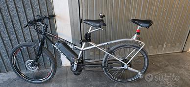 vendesi tandem corto elettrico con motore bafang e batteria da 17,5 amp per un'autonomia di circa 60 km è stato modificato il cambio monta un Acera il freno anteriore è a disco e sospensione rinforzate, gomme da MTB con raggi in acciaio. nuovo ci vogliono più di 2.300euro . non trattabile