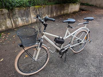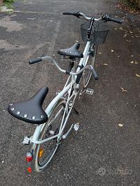 Tandem corto, 3x7 marce, telaio riverniciato da poco, ruota anteriore con dinamo nel mozzo e impianto luci led. Portapacchi anteriore. Selle classiche e pneumatici bianchi nuovi. Perfettamente funzionante. Prezzo leggermentre trattabile.