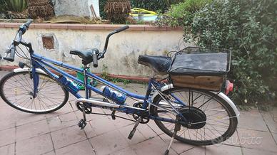 vendo Tandem elettrico pedalata assistita con motore a 48 volt 1000 watt con cambio Shimano 6 marce porta 2 persone in salita senza un mino sforzo. senza batteria con possibilità di montarci pure la batteria con un costo a parte . qualsiasi prova prezzo trattabile