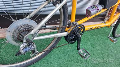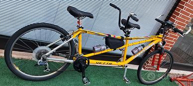PRIVATO VENDE: TANDEM ELETTRICO TELAIO IN ALLUMIO, MARCA VETTA, CON MOTORE CENTRALE 80 NM COPPIA (AFFRONTA QUALSIASI SALITA IMPEGNATIVA) IN REGOLA CON IL CODICE DELLA STRADA ART. 50, CON BATTERIA 720W-20 Ah. GARANZIA 2 ANNI SU MOTORE E BATTERIA. CAMBIO SRAM 9 VELOCITA' FRENI IDRAULICI LAVORI ESEGUITI PRESSO LA NS OFFICINA: 2 COPERTURE E 2 CAMERE NUOVE 2 SELLE COMFORT NUOVE 1 ATTACCO ED 1 PIEGA REGISTRABILE NUOVI 2 PAIA PEDALI ALLUMINIO NUOVI 1 CAMPANELLO VINTAGE NUOVO 2 BORRACCE NUOVE VISIBILE PRESSO CICLI PROFESSIONAL PER VISIONE E PROVA, PREVIO CONTATTO TELEFONICO PER CONFERMA DISPONIBILITA', AL