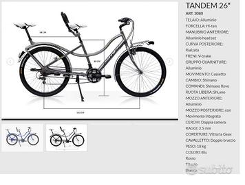 Vendo tandem corto Compact lunghezza 185 cm. Ideale per camper. Gomme Maxxis e un manubrio in più. € 450 non trattabili.