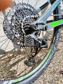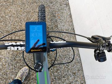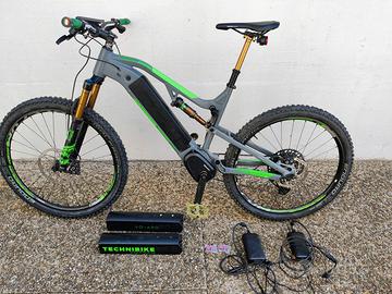 La Technibike Votaro FS condivide la piattaforma (geometria del telaio, motore elettrico e batteria) con la Storck e:drenalin, la Rose Elec-Tec FS2 e l'Olympia EX-1 degli anni modello 2019-2020. I componenti di questo marchio relativamente poco conosciuto sono di altissima qualità. Il motore Conti è di fatto un Brose S, lo stesso tipo utilizzato da Specialized e Rotwild. La bici mostra i segni del tempo, ma è ancora in ottime condizioni meccaniche ed elettriche e offre tanto divertimento. Anno di produzione: 2020 Chilometraggio: oltre 2255 km Taglia telaio: L Peso: 22,5 kg Autonomia realistica: circa 55 km con un dislivello di circa 1200 m Prezzo originale: 5000 € Componenti standard: Motore: motore centrale Continental, 36V, 250W, coppia 90 Nm Batteria: batteria Continental DT, 638 Wh, rimovibile/bloccabile Telaio: alluminio, taglia L Forcella: FOX 34 Float Factory Ammortizzatore: FOX Racing Shox Float DPS EVOL LV Escursione: 140 mm anteriore e posteriore Freni: Magura MT5 (freni a disco idraulici), dischi da 203 mm / 180 mm Aggiornamenti ed extra: 2 batterie aggiuntive e 1 caricabatterie = 3 batterie e 2 caricabatterie Cambio elettronico SRAM GX 1x12 AXS Freno di scorta Pedali SPD (monolaterali) Pneumatici Wolfpack Enduro 2.6x27.5 nuovi di zecca, tubeless