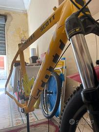 Vendo telaio in lega di alluminio scott con predisposizione per attacco freno a disco idraulico Con alcuni segni di utilizzo ma in buone condizioni generali regalo portaborraccia ..
