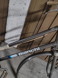 telaio bici Bianchi vintage, colore grigio balena con luci e campanello originali necessità solo delle ruote