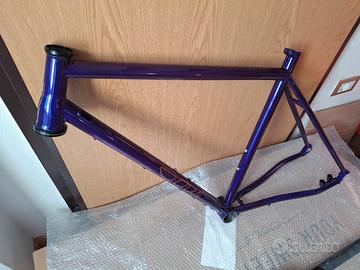 Vendo telaio bici in acciaio ottima qualità strada-gravel-bikepacking Sour Clueless taglia S, passaggio cavi interni, colore Purple Blu, forcella interamente in carbonio Sour Discover con fori laterali, serie sterzo di alta gamma White Industries U.S.A. compresa.