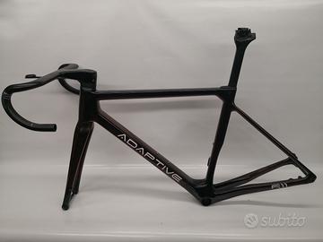 Telaio A11 Adaptive in colorazione Cameleon Black/Red, taglia 52, perni passanti anteriore/posteriore, reggisella, forcella, manubrio misura 420/110, supporto Garmin.