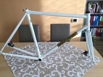 Vendo telaio bici da passeggio per freni a disco ,pinze incluse ,telaio artigianale nuovo misura 54 centro fine leggermente slooping corrispondente ad un 58 tradizionale forcella in acciaio con filo passante,ottimo per bici da passeggio