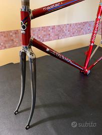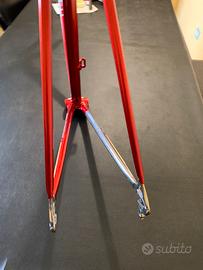 Telaio Colnago Master Colore Giuseppe Saronni. Misura 53,5 x 53,5 centro-centro Telaio + forcella. (Non c’è la vite stringi sella) Lo comprai usato e non l’ho mai montato. Bellissimo colore, senza crepe e senza piegature. Rosso metalizzato. La forcella ha dei punti di ruggine