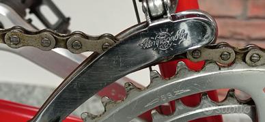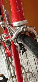 Telaio in ottime condizioni. Anni 80, riverniciato. Vernice rossa e forcelle cromate. Piccoli segni di utilizzo. Telaio Pinarello con marchio inciso, cambio , freni, mozzi e pedivelle Campagnolo. Manubrio originale 3T con estensioni. Senza ruota posteriore. Solo ruota anteriore. Sensore velocità non compreso. Venduta senza pedali. Disponibile subito. Solo seriamente interessati. No sconti, no spedizione, no prova su strada. Prezzo non trattabile