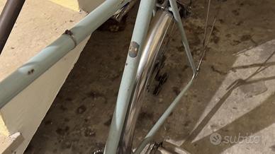 Telaio in acciaio con congiunzioni lavorate e vernice celeste originale. Perfetta base per restauro conservativo o progetto bici vintage.