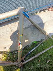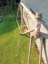 Cedo un bellissimo telaio bicicletta da corsa epoca anni 60 primi 70 penso sia del 1972 come è riportato sul telaio conservato benissimo con forcellini campagnolo completi di serie sterzo movimento centrale quadro e stringi sella e porta borraccia tutto già montato come da foto pronta da "vestire" è ancora sporca impolverata è non utilizzata da almeno un ventennio, le foto ingannano sembra ruggine ma se lo pulite con spugna e sapone torna come nuovo Pesenti sprint 1972 ideale per chi vuole farsi una bicicletta vintage originale spendendo relativamente poco