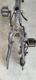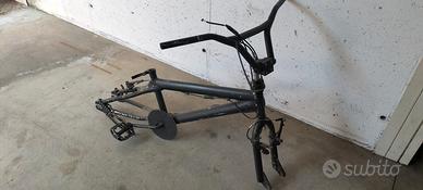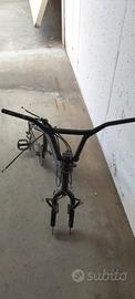 vendo telaio bmx con freni, corona e pedali, la bici necessita di una pulita ed una riverniciata ma può essere usata nelle condizioni delle foto