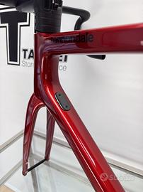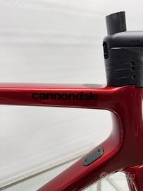 Telaio NUOVO Cannondale SuperSix EVO Hi-MOD rientrato da garanzia ad un nostro cliente e mai montato come si può vedere dalla lunghezza della forcella, solo il reggisella e il manubrio sono usati, sostituito per passaggio a Specialized.