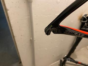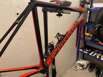 Telaio Cannondale supersix evo hi mood, tg 52, con cavi Interni, completo di cuscinetti movimento centrale, forcella, reggi sella, presenta come da foto un difetto da sistemare sullo stelo del reggi ruota posteriore parte sx, il telaio ha qualche graffio da normale usura.