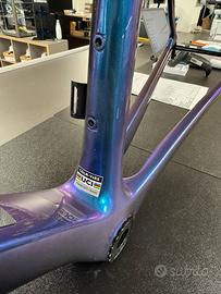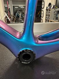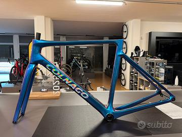 Telaio usato 6 mesi Colnago V4rs, taglia Colnago 510 (55 orizzontale), colore blu cangiante, completo di forcella, forcellino, perni passanti, movimento centrale CERAMIC SPEED. Perfetto senza graffi, come nuovo.