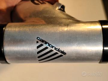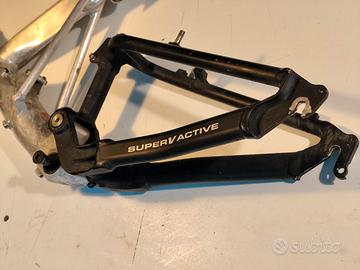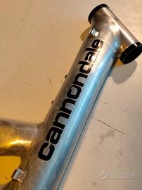 Vendo telaio Cannondale Super V 2000 con forcellone. Peso circa 3.3 kg, dritto e senza crepe, mai usato per Downhill, completo delle sedi per i cuscinetti di sterzo, boccole dell ammortizzatore, forcellino del cambio, movimento centrale fluido e scorrevole.La Spedizione é a carico dell acquirente, dovrebbe essere una misura M. Viste le dimensioni del paccoprima di acquistare invia un messaggio per verificare le spese di spedizione.