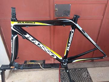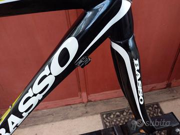 Condizione buona. Interamente carbonio, leggerissimo, piccoli segni di usura, ma in ordine. Geometria poco slooping, tubo piantone da 51,5; idem orizzontale, da reggisella a cannotto sterzo, sempre centro-centro. Struttura del telaio molto corposa, scatola movimento bsa, diametro reggisella 31,6 e tubo forcella lungo 23,5.