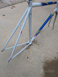 telaio in acciaio saldato a tig, molto leggero, con forcella cromata e attacco manubrio pantografato. 55 quadro (55 orizzontale c-c, 55 verticale c-c). solo telaio forcella e pipa. Si prega di astenersi curiosi e perditempo, grazie.