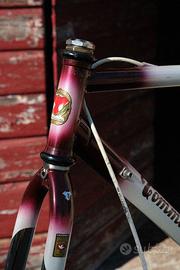 Telaio del quotato artigiano Tommasini, datazione 1989, fatto con i leggerissimi tubi di acciaio Nivacrom EL sagomati, probabilmente fatto per un professionista viste le misure, 56 lunghezza per 48 altezza, sloping. Equivale a una taglia L.
