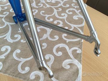 Vendo telaio da corsa per freni a pinza Columbus artigianale,misura 54. Centro fine equivalente ad un 58 tradizionale,saldato completamente ad argento,forcella carbonio Columbus ,completo di serie sterzo