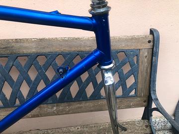 Telaio da corsa Rossin artigianale con tubi in acciaio Columbus e scatola movimento centrale Cinelli, sistema di cavi del cambio interni al telaio; misura 53 X 54 leggerissimo. ( la serie sterzo e’ solo per tenere su la forcella)