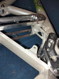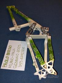 è rimasto in magazzino per anni, è del 2015 anche se il telaio viene ancora prodotto e costa solo quello 2000 euro. 220mm di corsa posteriore. Colorazione fatta a mano ognuna univoca. Telaio fantastico con durata infinita e geometria molto avanti. Disponibile qualche altro telaio con altre colorazioni. Alluminio.