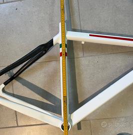 Telaio in alluminio con forcella anteriore e foderi posteriori in carbonio. Appena verniciato.