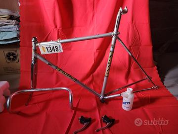 Vendo telaio in acciaio Cicli Liotto Vicenza anni 70 con serie sterzo e movimento centrale,in perfette condizioni, con piccoli segni del tempo. Completo di piega 3t,leve freno Campagnolo e borraccia Liotto originale. Preciso che il reggisella è originale pantografato Liotto Telaio approvato dal regolamento EROICA Misura 53 x 53