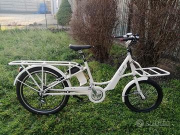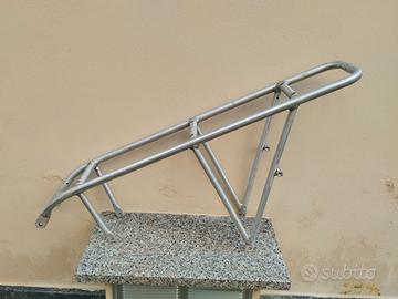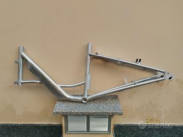 Telaio grezzo in alluminio completo di portapacchi posteriore ed anteriore, pedane e forcella in acciaio per bici cargo elettrica, della ditta Brezza modello Mugnaia