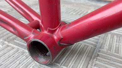 Telaio per bici da corsa vintage, usato e con segni di utlizzo su verniciatura, adesivi e parti cromate.