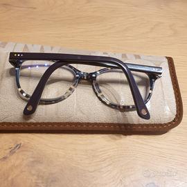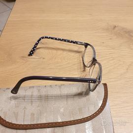 Forma cat-eye anche se non pronunciatissima, in acetato, leggeri, resistenti e confortevoli. Montatura e aste in un simpatico motivo a pois multicolore su sfondo scuro. Vi sono montate lenti per leggere (× 1) e se cercate questa gradazione sono perfetti altrimenti potete sostituire le lenti con quelle che vi occorrono. Fornito con custodia e panno per la pulizia ancora chiuso nella confezione. Questo telaio è NUOVO. Gli occhiali sono stati fatti e mai portati. BELLISSIMI!