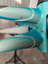 Bel telaio in tubazioni Columbus SLX Marca Pinarello modello Montello, cromature in perfette condizioni, qualche difetto di verniciatura dato dall'uso e dagli anni, completo di serie sterzo e movimento centrale Shimano. Misura 56 cm centro centro tubo orizzontale, 56 cm centro centro tubo verticale e 62 cm centro centro tubo diagonale. Possibile spedizione a carico dell' acquirente. Ho anche delle coppie di cerchi da aggiungere con poca differenza di prezzo. Le foto dei cerchi le invio (se interessano) dopo primo contatto.