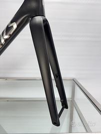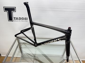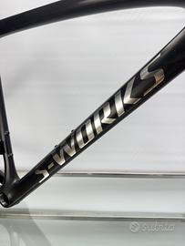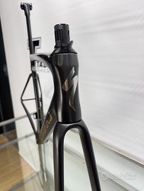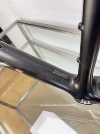 Telaio Specialized S-Works Tarmac SL7 colorazione del 2022 in taglia 54, acquistato presso di noi circa 2 anni fa, e tenuto in modo perfetto presenta solo un piccolo segno minimo sulla scritta visibile in foto, ma il resto è davvero impeccabile, sempre utilizzato in modo amatoriale mai fatto gare, un vero affare.