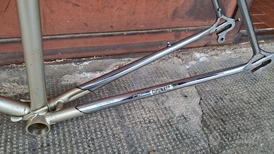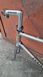 Vendo telaio anni 70 marca Cusinato, taglia 60 (circa 57,5 o x 58 v) per bici da corsa vintage eroica, usato in buone condizioni, piantone 26,8 mm, inclusa pipa 3ttt pantografata 100 mm.