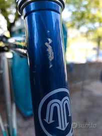 Si tratta del top di gamma della Moser di quegli anni, assemblato con la speciale saldatura a tecnologia Fillet Silver Brazing (FSB), la più costosa e più laboriosa saldatura per telai bici per uso professionale.