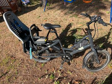 Tern Quick Haul e-cargo bike Bosch PowerPack 500 – quasi nuova, <200 km Vendo bici cargo elettrica Tern Quick Haul in condizioni eccellenti, usata pochissimo, sempre tenuta in garage. Perfetta come bici familiare, cargo bike urbana o alternativa all’auto in città. Specifiche: Motore Bosch Active Line Plus Batteria Bosch PowerPack 500 Display Bosch Intuvia (con pellicola protettiva originale) Cambio Shimano NEXUS 7 velocità (interno al mozzo) Freni a disco idraulici Manubrio regolabile in altezza Luci LED potenti integrate Pneumatici Schwalbe Big Apple NUOVI Pedali originali in alluminio Ideale per famiglia / bambini: Può trasportare fino a due bambini sul retro: incluso seggiolino per bimbi piccoli e sedile per bambino più grande con maniglie Tern Sidekick Joyride Bars. Portata totale fino a 150 kg. Adatta a persone fino a 2 m di altezza. Possibile prova Solo ritiro a mano.