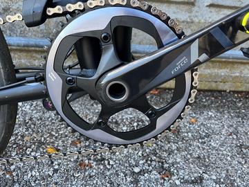 Tern Verge X11 km 0, assolutamente nuova, mai usata, custodita in collezione. Denominata Light Speed (Velocità della Luce), riconosciuta come la bici pieghevole più veloce al mondo. SPECIFICATIONS SPEEDS: 1 x 11 WEIGHT: 10.2 kg (22.5 lb) GEAR INCHES: 24" - 102" (1.94 - 8.17 m) FOLDING SIZE: 38 × 80 × 74 cm (15 × 31.5 × 29.1 in) FOLDING TIME: 10 seconds FRAME SIZES: One size DISTANCE: SEATPOST TO HANDLEBAR: 61 - 66 cm (24 - 26 in) DISTANCE: SADDLE TO PEDAL: 66 - 93 cm (26 - 36.6 in) SUGGESTED RIDER HEIGHT: 142 - 190 cm (55.9 - 74.8 in) MAX GROSS VEHICLE WEIGHT: 120 kg (264.6 lb) MAX RIDER WEIGHT: 105 kg (231.5 lb) FRAME: Tern Verge, hydroformed aluminum w/ smooth TIG welding, OCL+ joint, 3 patented technologies FORK: Tern Tarsus, 6061-AL, hydroformed HANDLEPOST: Tern Physis 3D (G2), 3D forged, 5 patented technologies, 12°, 290 mm STEM: Syntace VRO, adjustable, Built for Tern HEADSET: Flux Pro, angular contact bearings, Physis integrated HANDLEBAR: Kinetix Pro X, double-butted 7050-AL, for VRO GRIPS/BAR TAPE: Ergon GS1 Leichtbau SADDLE: Ergon SMC10 Sport Gel SEATPOST: Stasis by Syntace, 7050-AL, hard-anodized SEATPOST CLAMP: Syntace OverLock FRONT BRAKE: Shimano Deore, hydraulic disc REAR BRAKE: Shimano Deore, hydraulic disc BRAKE LEVERS: Shimano Deore, hydraulic disc BRAKE CABLE & HOUSING: Shimano, hydraulic FRONT WHEEL: Kinetix Pro X Disc, Paired Spoke technology, straight-pull design, 20H, 600 g REAR WHEEL: Kinetix Pro X Disc, Paired Spoke technology, SRAM XD Driver, straight-pull design, 20H, asymmetric flange, 720 g TIRES: Schwalbe One, 28-451, ADDIX compound, 115 psi SHIFTER(S): SRAM GX trigger, 1 x 11 spd REAR DERAILLEUR: SRAM X1 CRANKSET: SRAM Force® 1 carbon, X-SYNC chainring, 52T CASSETTE/FREEWHEEL: SRAM XG-1150, 10-42T, 11 spd BOTTOM BRACKET: SRAM GXP CHAIN: KMC X11 SHIFTER CABLE & HOUSING: Jagwire LEX-SL, slick treatment, alloy ferrules LEFT PEDAL: MKS Compact Black RIGHT PEDAL: MKS Compact Ezy Black SPARE PARTS: MKS Pedals & N°3 Tubolito Inner Tubes