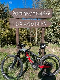 Escursione da 170 mm, freni a 4 pistoni, trasmissione a 12 velocità, batteria integrata da 630 Wh, monta modifica con batteria extender da 252 wh nel portaborraccia ( autonomia testata di 110 km su percorso con dislivello di 1000 m), nuovo motore Shimano EP8 85Nm ruote da 29 e 27,5. Taglia M. Per info non esitate a chiedere.