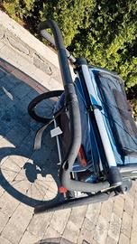 Thule Chariot Cross 2 rimorchio per bici/passeggino per due bambini con ruotine e attacco per bici. Unico proprietario, del 2017, in buone condizioni a parte il manico e la zanzariera un po' rovinati