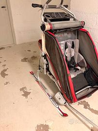 Thule Chariot CX2 Rimorchio multifunzione per due bambini con ruotine, ruota da trekking, gancio per bici, kit sci e adattatore per neonati. Usato pochissimo