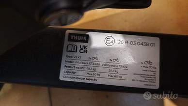 Vendo portabici Thule Velospace Xt Platform Towbar Bike Rack Black/aluminum mai usato per inutilizzo. Prezzo non trattabile Non spedisco, ritiro in zona