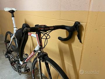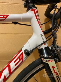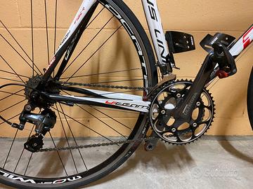 Bici telaio full carbon leggerissima, completamente revisionata, guarnitura Ultegra 50-34, Comandi e cambio NUOVI Tiagra 10v upgradabile a 11v. Catena NUOVA. Nastro manubrio NUOVO. Sella Prologo. Pedali LOOK. Doppio portaborracce. Ruote MOST WILDCAT F3 alluminio, copertoni VITTORIA Rubino PRO (praticamente nuovi).