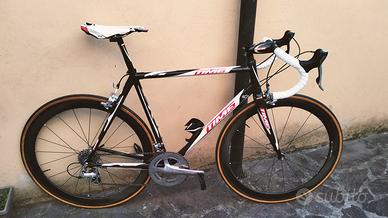 bellissima bici da corsa super leggera la bici è pronta a l'uso e per collezionisti. è stata tutta smontata ed ingrassata sono stati sostituiti cavi e guaine nuovi gommoni copri leve nuovi , nastro manubrio prologo nuovo.la bici non verrà più toccata come se fosse in un negozio, nel caso si volesse usare ovviamente dopo qualche km fare un controllo serraggio di tutto. invece se si vuole appendere con collezione si può lasciare così. gruppo dura ace modello 7800, 10v ruota in carbonio con mozzi dura ace. per info e misure contatti senza problemi.