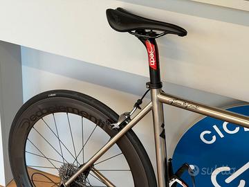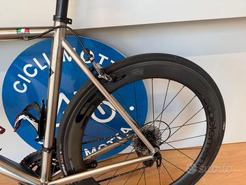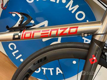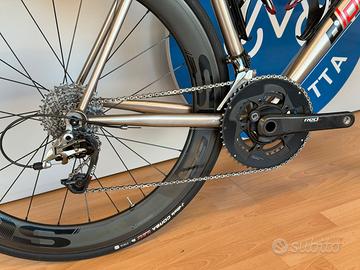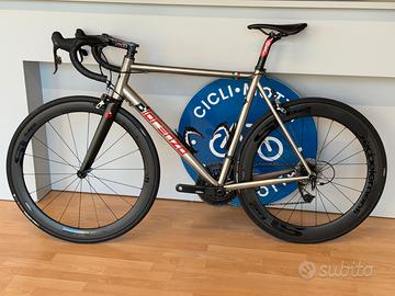 Bicicletta artigianale in titanio marchio Di Lorenzo, taglia 56, gruppo SRAM RED meccanico 11v (52/36 - 11/32), ruote Carbon Dedaelementi SL48/62, manubrio carbon Deda Superzero